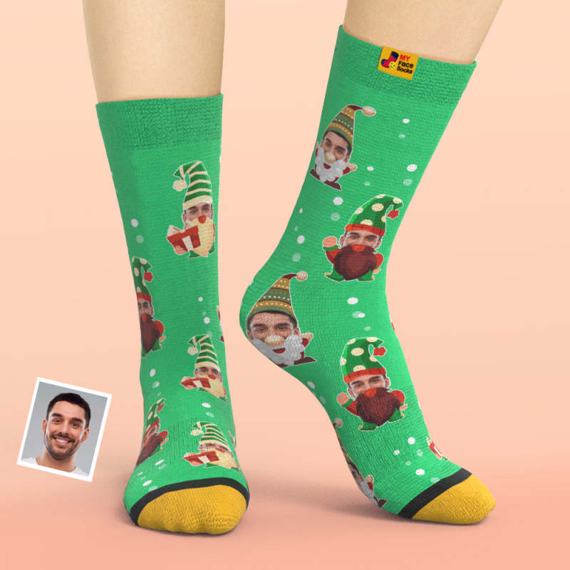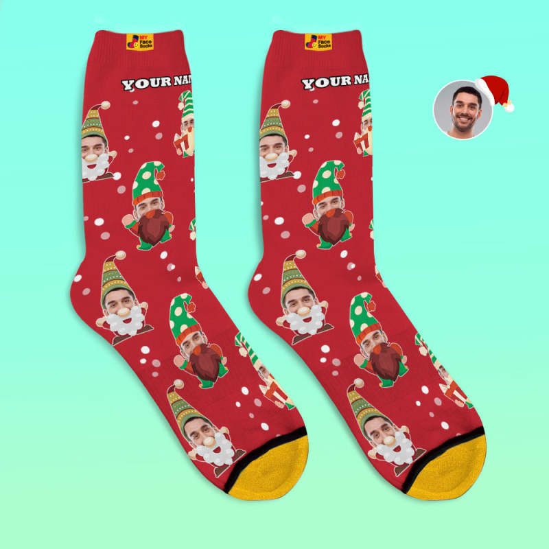Cadeaux De Noël, Chaussettes Imprimées Numériques 3d Personnalisées My Face Socks Ajoutez Des Images Et Nom Bearded Gnome
