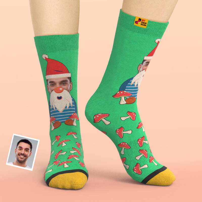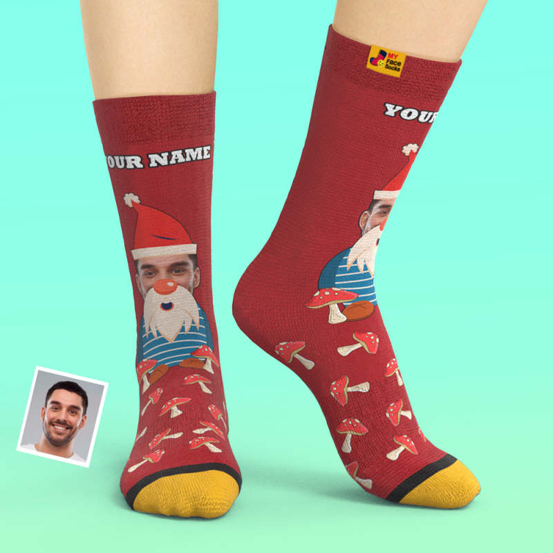 Cadeaux De Noël, Chaussettes Imprimées Numériques 3d Personnalisées Mes Chaussettes Pour Le Visage Ajoutez Des Images Et Nommez Les Champignons Nains De Noël