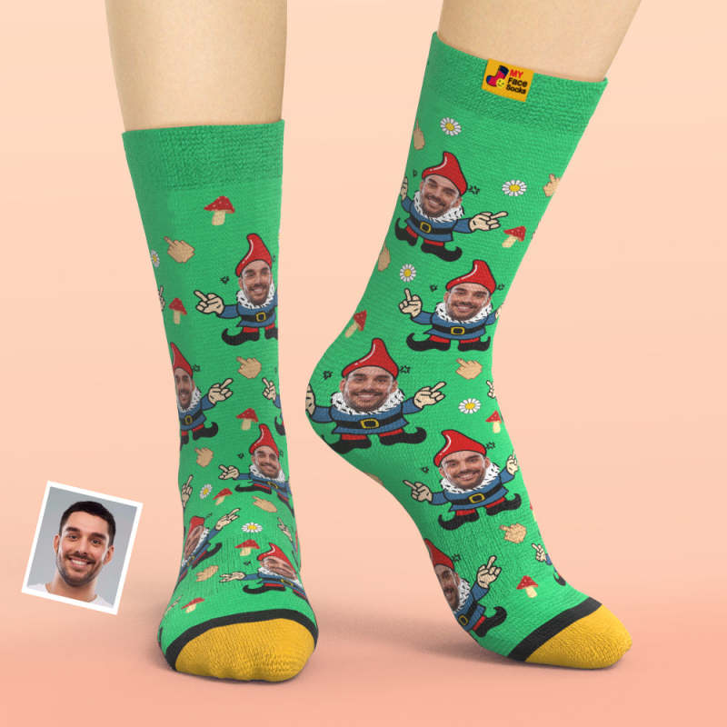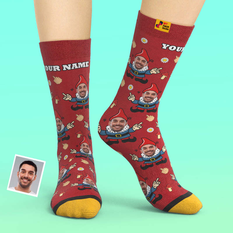 Cadeaux De Noël, Chaussettes Imprimées Numériques 3d Personnalisées My Face Socks Ajoutez Des Images Et Nom Gnome
