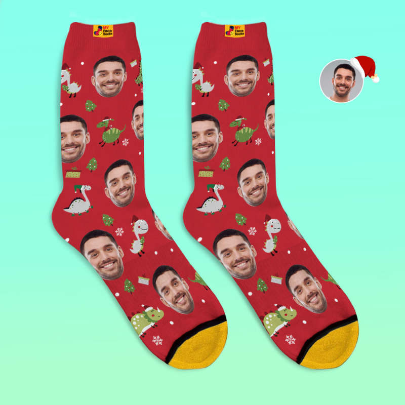Cadeaux De Noël, Chaussettes Personnalisées Imprimées En 3d Numérique My Face Socks Ajouter Des Images Et Nommer Le Dinosaure Du Bonnet De Noel