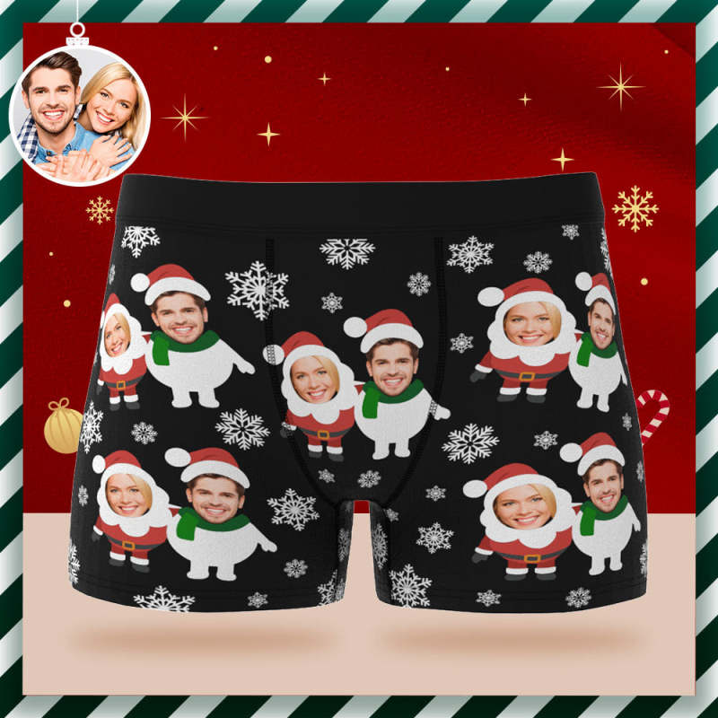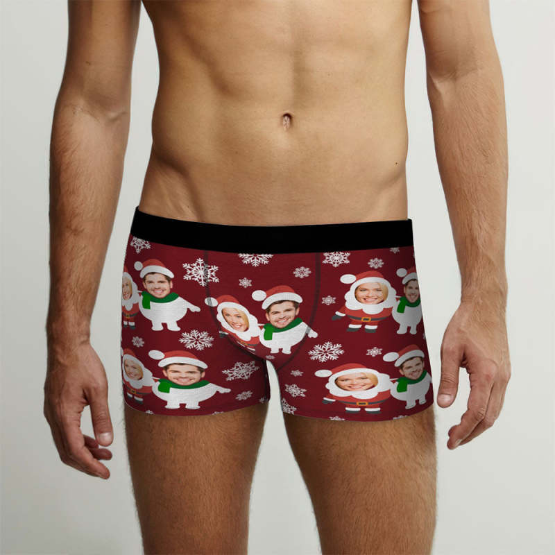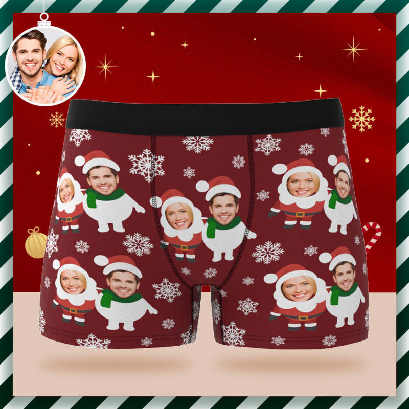 Boxers Personnalisés Pour Hommes, Slips De Noël Personnalisés Avec Photo Du Père Noël Et Du Bonhomme De Neige