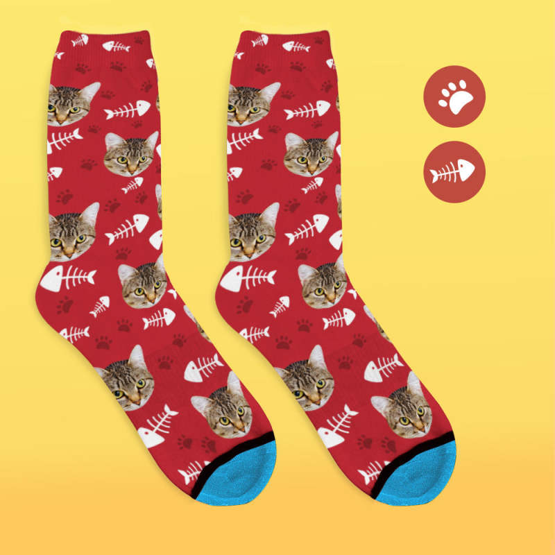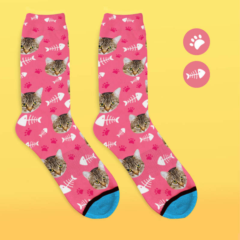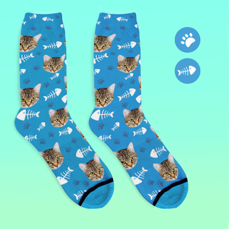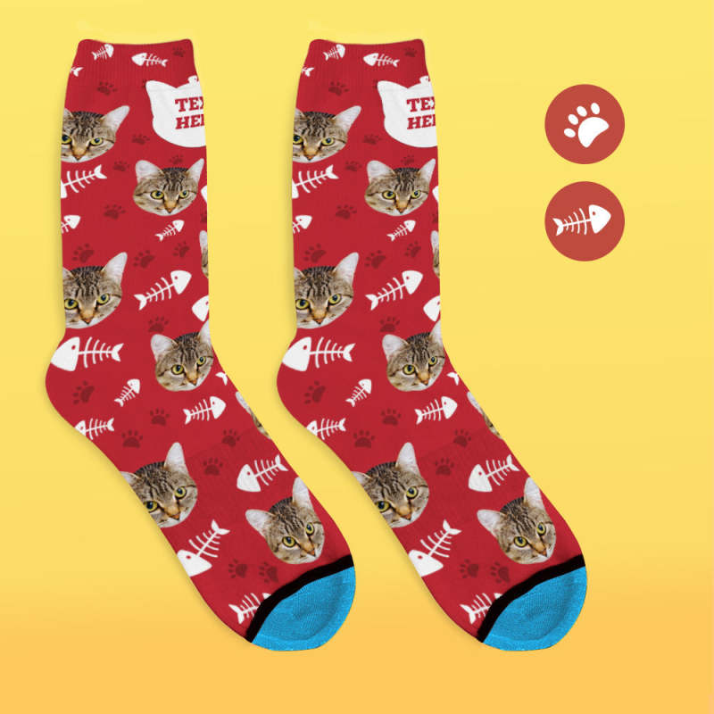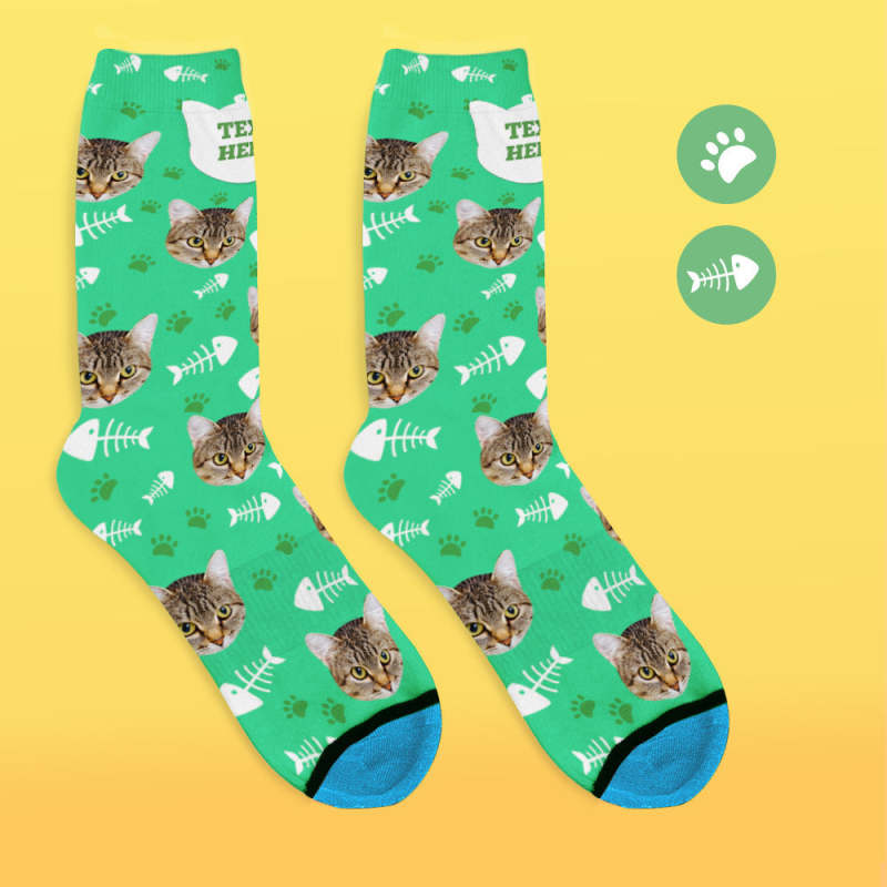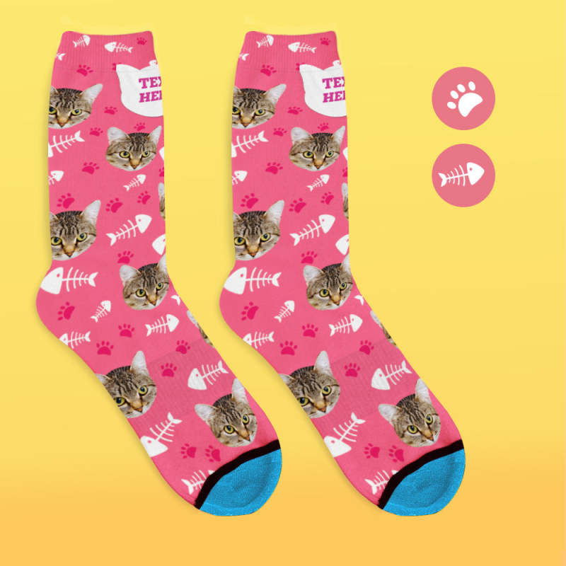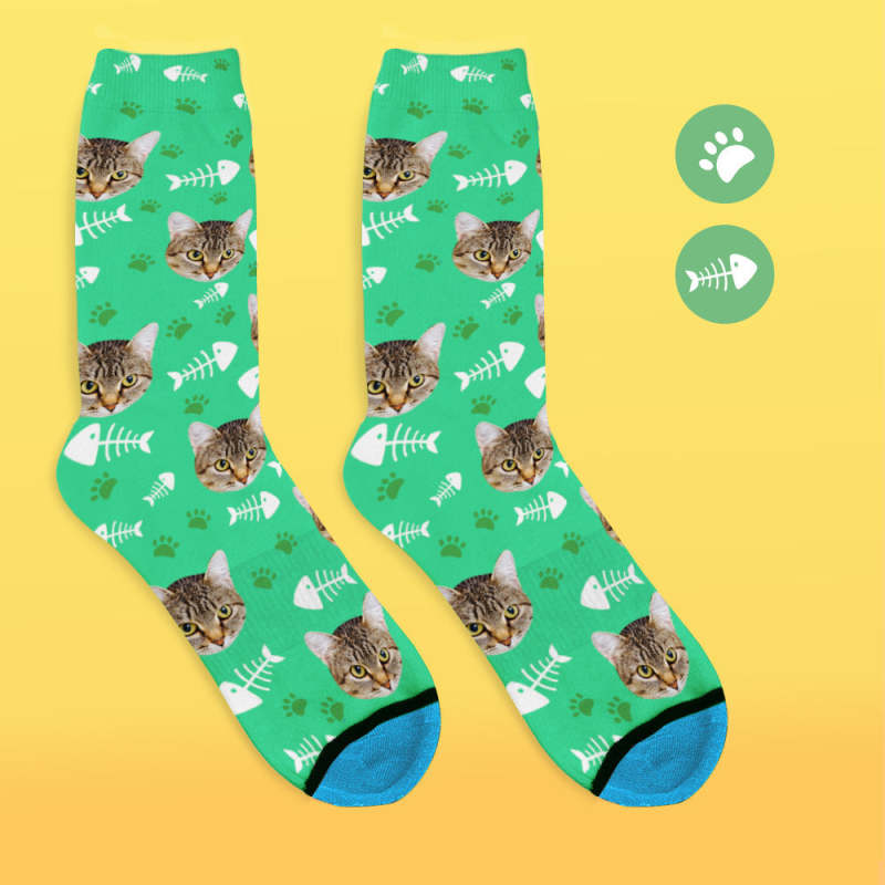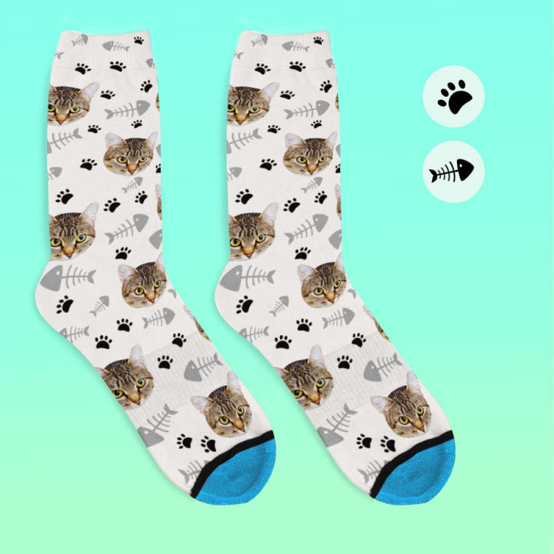 Chaussettes de Visage Imprimées en 3D Numérique Personnalisées Ajouter des Images et un Nom - Chat