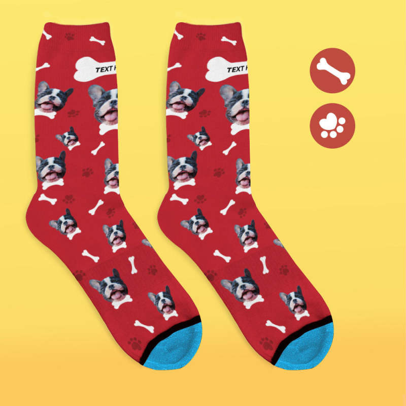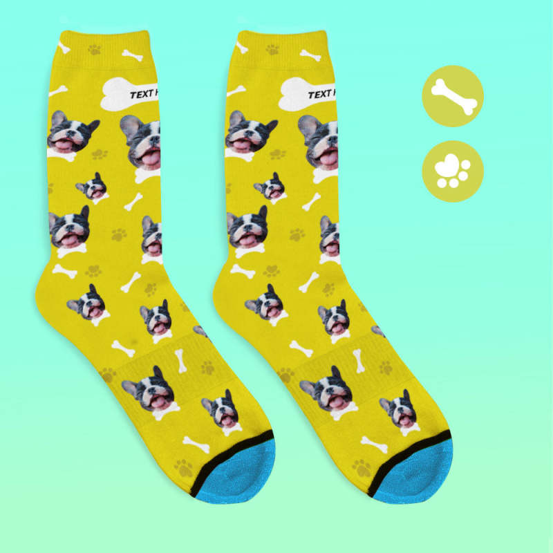 Chaussettes de Visage Imprimées en 3D Numérique Personnalisées Ajouter des Images et un Nom - J'aime mon chien