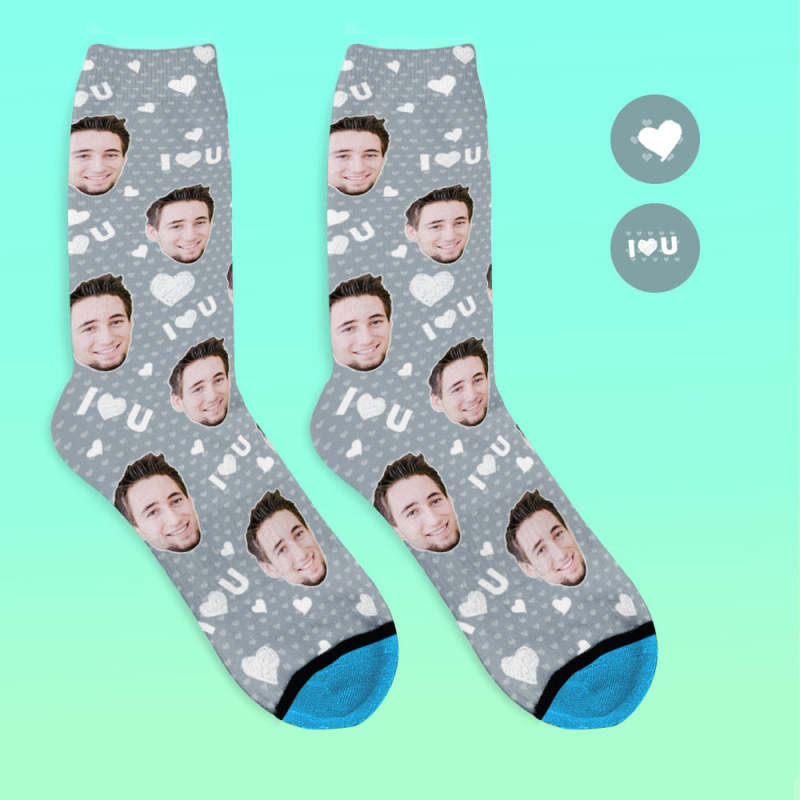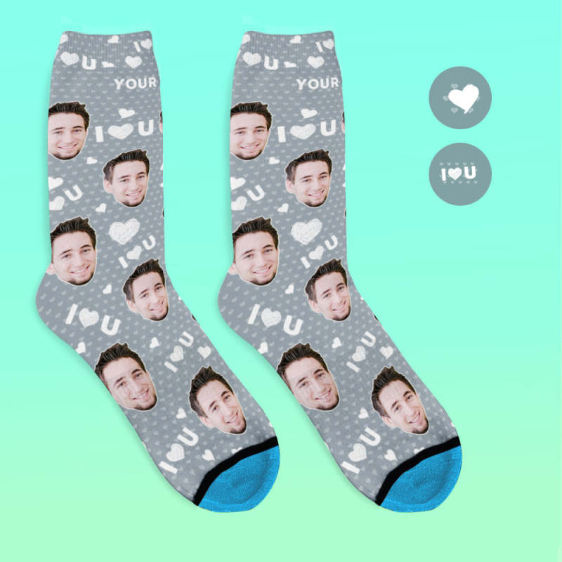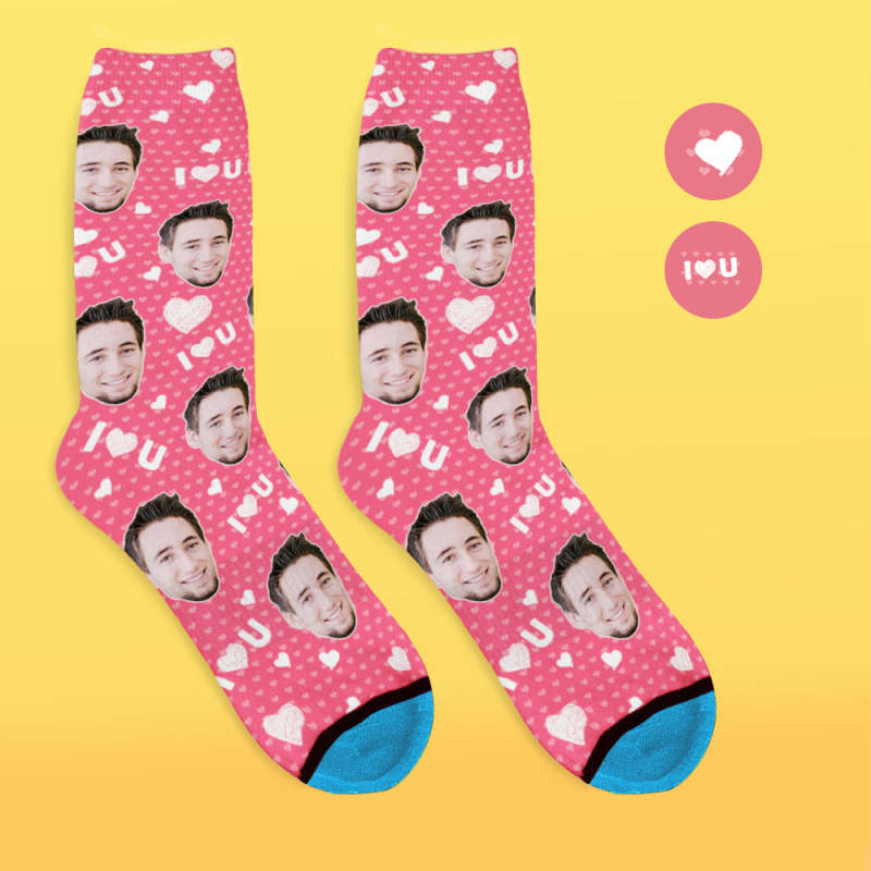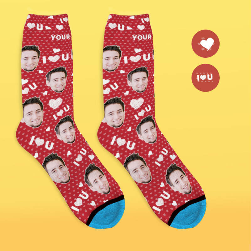 Chaussettes de Visage Imprimées en 3D Numérique Personnalisées Ajouter des Images et un Nom - Je vous aime