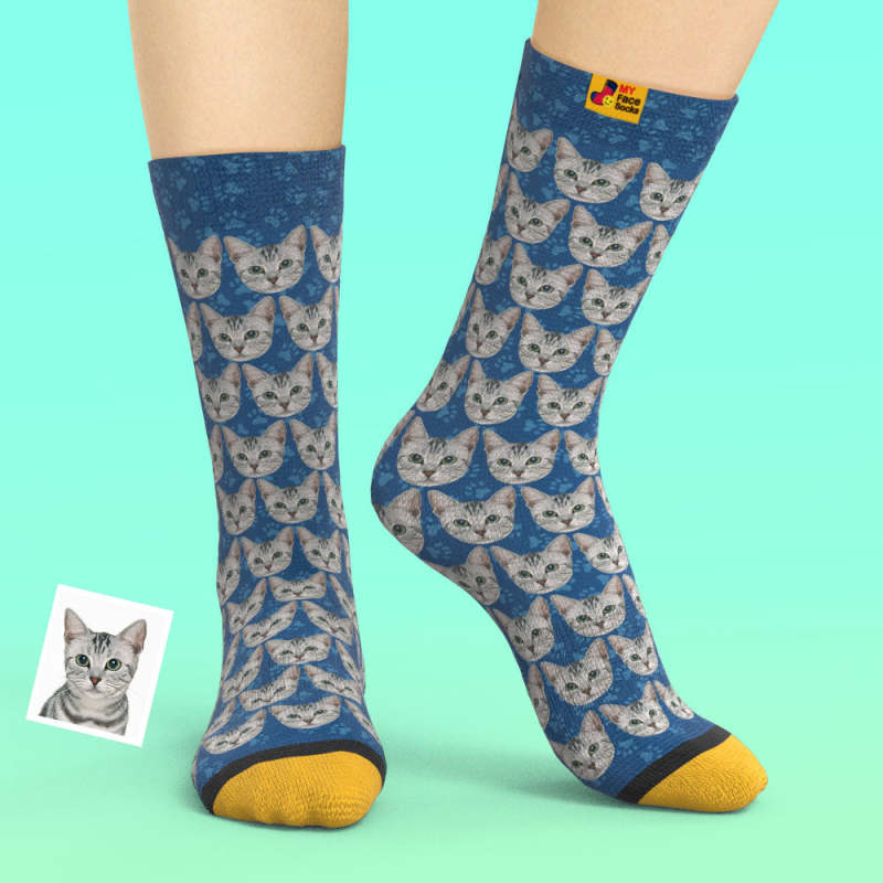 Chaussettes Imprimées Numériques 3d Personnalisées Ajouter Des Images Et Un Nom De Chat