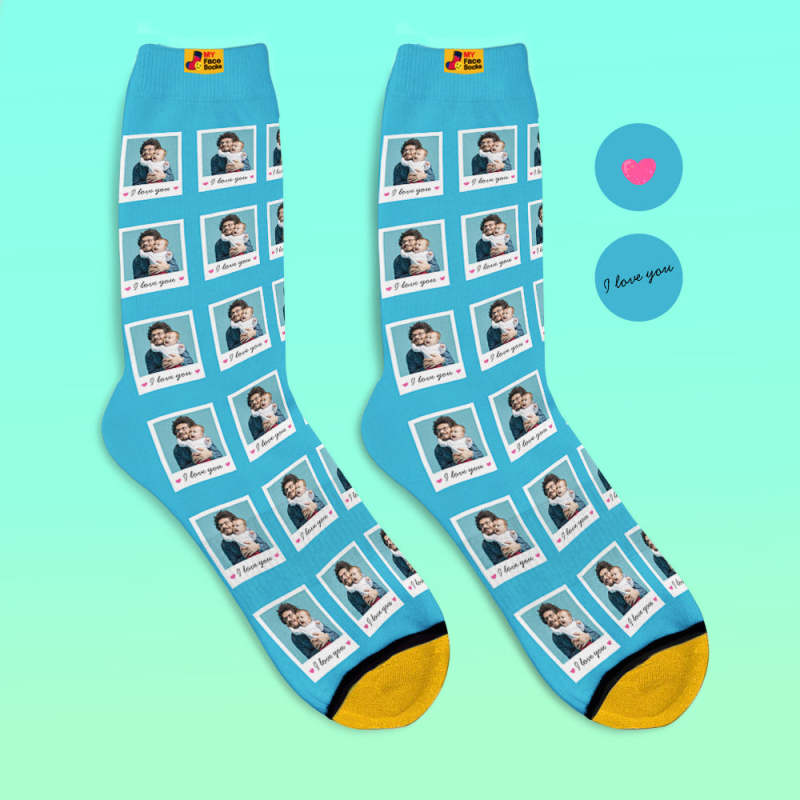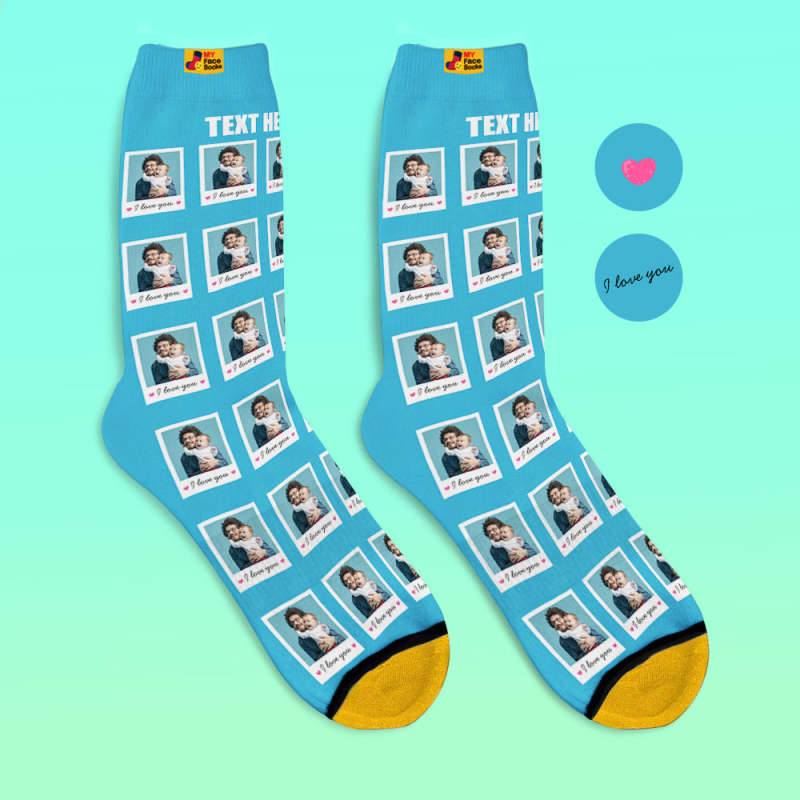 Chaussettes Imprimées Numériques 3d Personnalisées Ajoutez Des Images Et Nom Chaussettes Polaroid Je T'aime