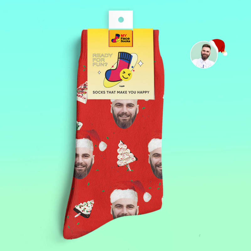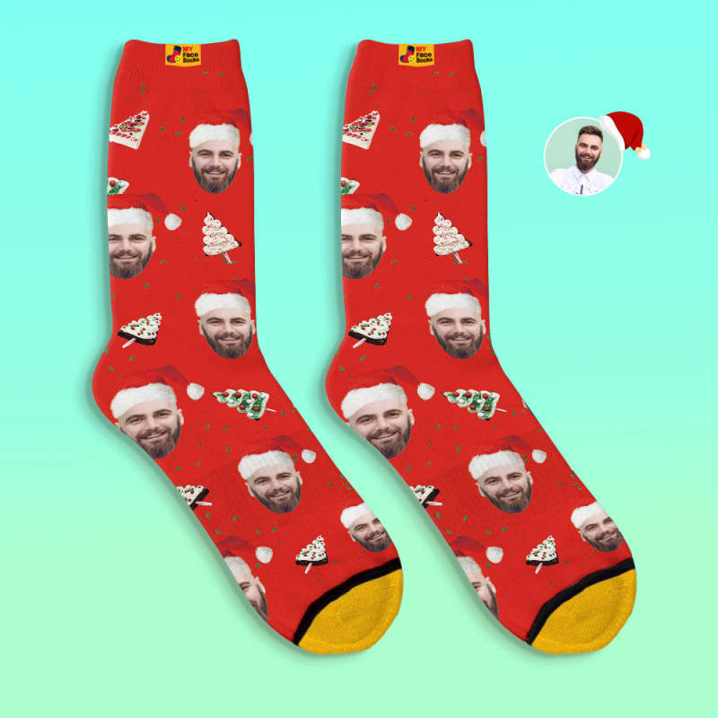 Chaussettes Imprimées Numériques 3d Personnalisées Chaussettes De Gâteau De Noël Joyeux Noël