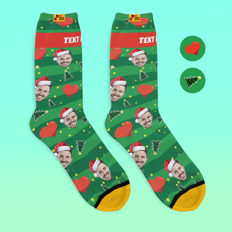 Chaussettes Imprimées Numériques 3d Personnalisées My Face Socks Ajouter Des Images Et Un Nom - Coeur De Noël
