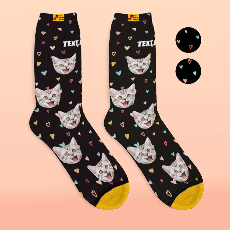Chaussettes Imprimées Numériques 3d Personnalisées My Face Socks Ajouter Des Images Et Un Nom - Coeurs Colorés