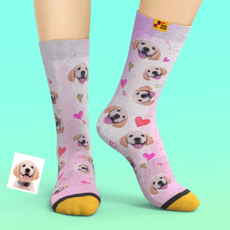 Chaussettes Imprimées Numériques 3d Personnalisées My Face Socks Ajouter Des Images Et Un Nom - Lovely Dog