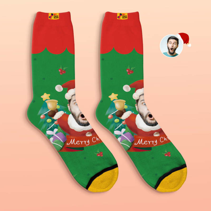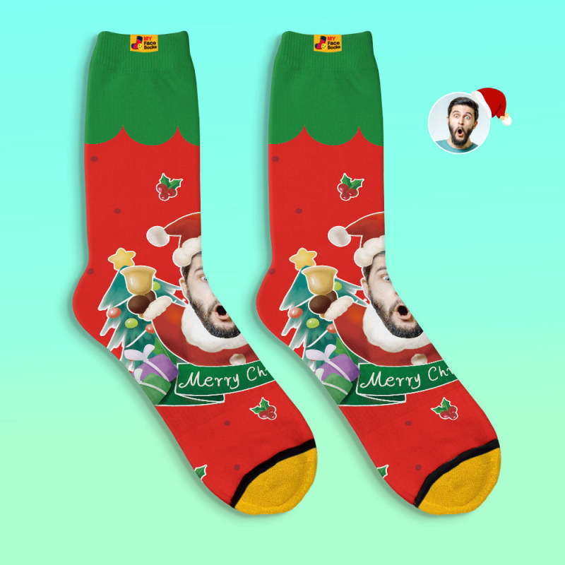 Chaussettes Imprimées Numériques 3d Personnalisées Chapeaux De Père Noël Chaussettes Cadeaux De Noël Cloches De Noël