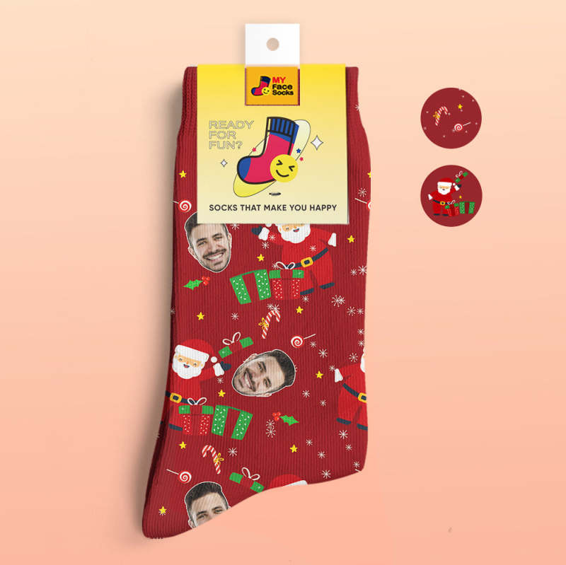 Chaussettes Imprimées Numériques 3d Personnalisées Santa Funny Face Chaussettes Cadeau Surprise De Noël