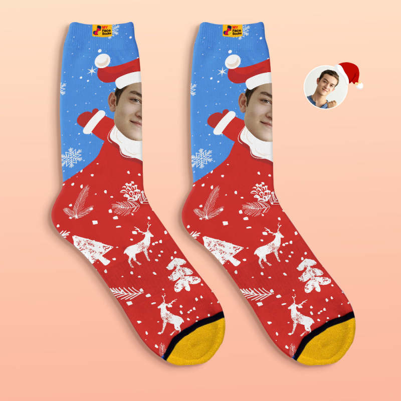 Chaussettes Imprimées Numériques 3d Personnalisées Snow Santa Happy Face Chaussettes Cadeau De Noël