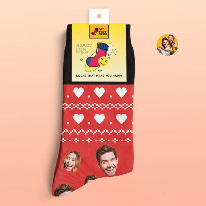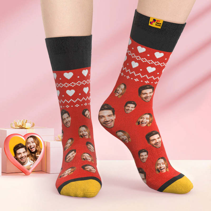 Chaussettes Imprimées Numériques 3d Personnalisées Cadeaux De La Saint-valentin Chaussettes Heart Fair Face