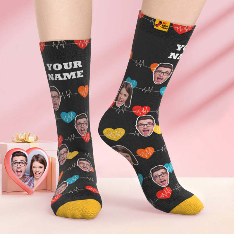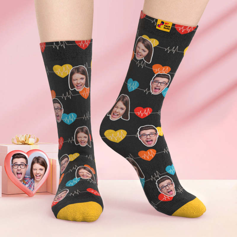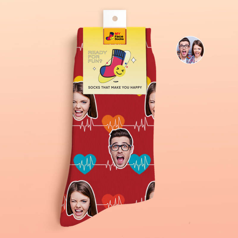 Chaussettes Imprimées Numériques 3d Personnalisées Cadeaux De La Saint-valentin Chaussettes Pour Le Visage Du Moniteur Cardiaque