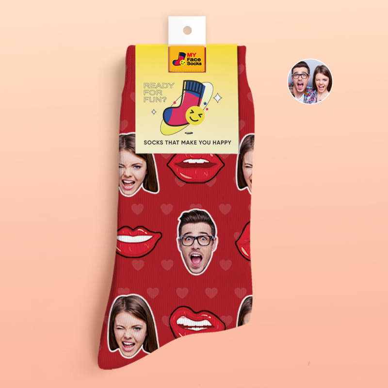 Chaussettes Imprimées Numériques 3d Personnalisées Cadeaux De La Saint-valentin Chaussettes Sexy Pour Le Visage Des Lèvres
