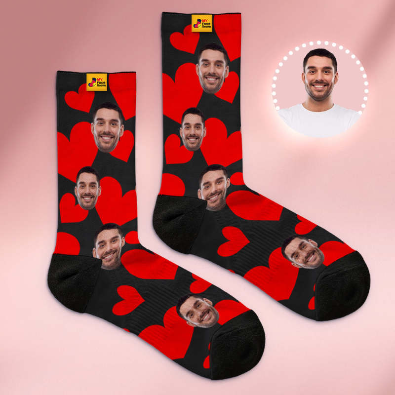 Chaussettes Respirantes Personnalisées, Aperçu En Ligne, Ajouter Des Images, Cœurs Rouges, Cadeaux De Saint-valentin Pour Couple