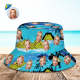 Chapeau de seau personnalisé Visage personnalisé All Over Print Imprimé de fleurs tropicales Chapeau de pêcheur hawaïen - Cité du vice