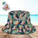 Chapeau Seau Personnalisé Visage Personnalisé Imprimé Fleur Tropicale Chapeau De Pêcheur Hawaïen - Flamant Rose