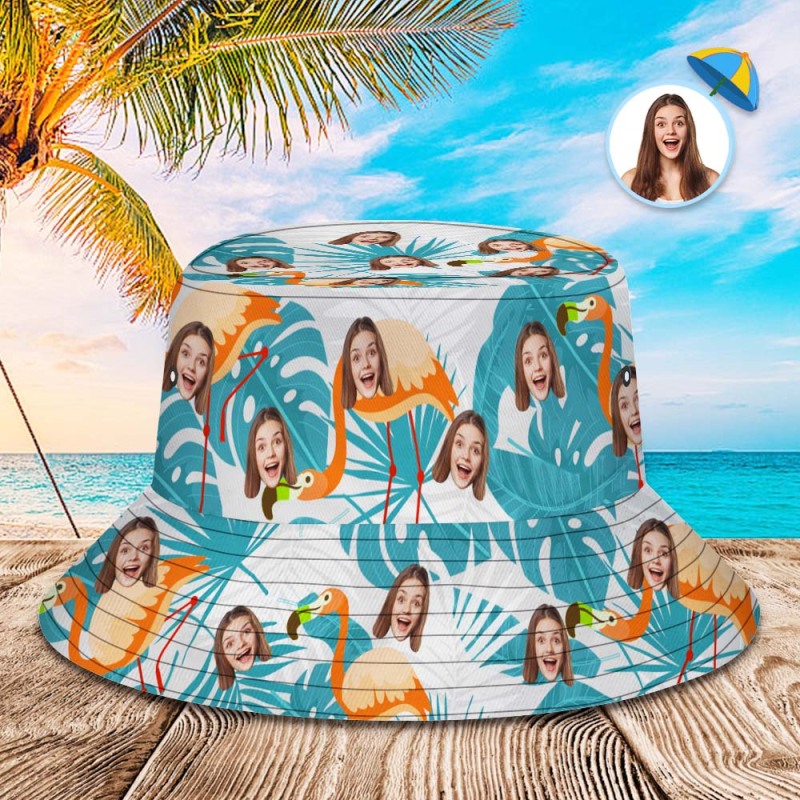 Chapeau De Seau Personnalisé Unisexe Visage Chapeau De Seau Été En Plein Air Flamants Roses Et Feuilles Bleues Chapeau De Seau - MyFaceSocksFR Chapeau De Seau Personnalisé Unisexe Visage Chapeau De Seau Été En Plein Air Flamants Roses Et Feuilles Bleues Chapeau De Seau - MyFaceSocksFR