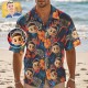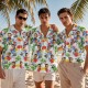 Chemise Hawaïenne Personnalisée Avec Imprimé Visage De Dessin Animé, Flamants Roses, Fleurs Et Feuilles