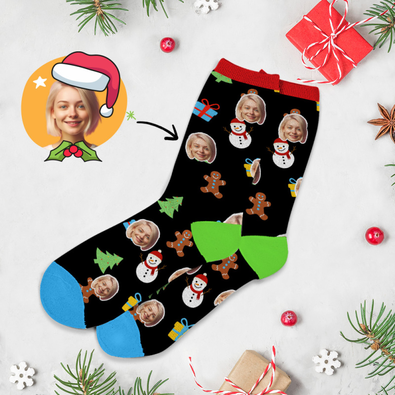 Chaussettes De Noël Personnalisées Avec Photo Imprimée, Designs Personnalisés, Meilleure Idée De Cadeau Pour Noël
