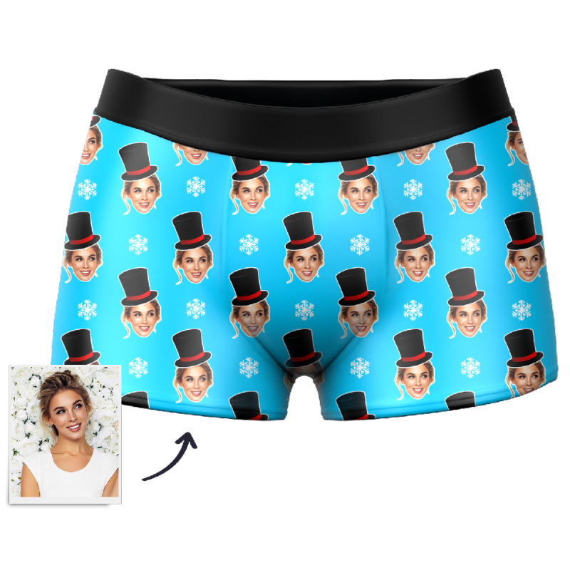 Visage sur Boxer Personnalisé avec un Bonhomme de Neige pour Noël