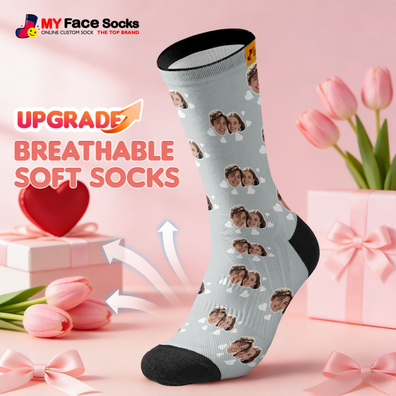 Chaussettes Personnalisées Pour Couples Avec Motif Cœur Et Photo « Je T'aime » - Cadeau Mignon Pour Les Couples