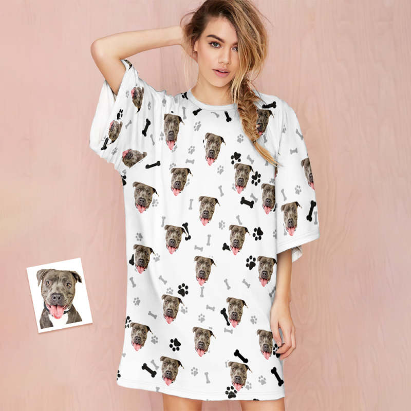Chemise De Nuit Personnalisée Avec Visage De Chien Photo Personnalisée Chemise De Nuit Colorée Surdimensionnée Pour Femmes Cadeaux D'os Pour Femmes