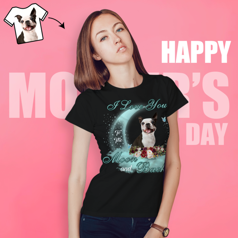 T-shirt personnalisé femme chien maman je t'aime à la lune et au dos cadeaux de fête des mères