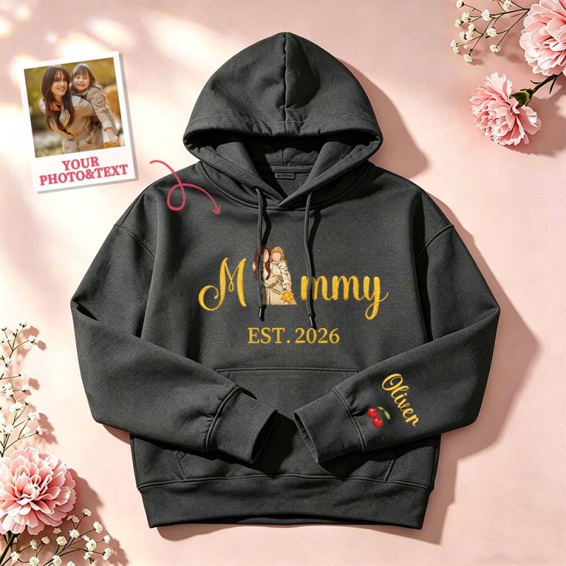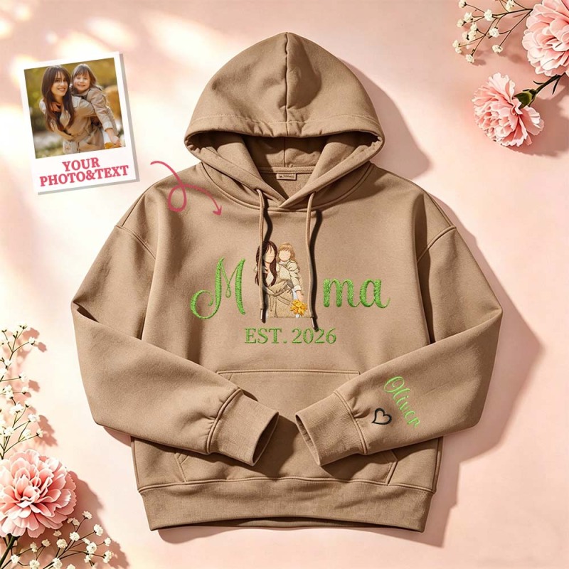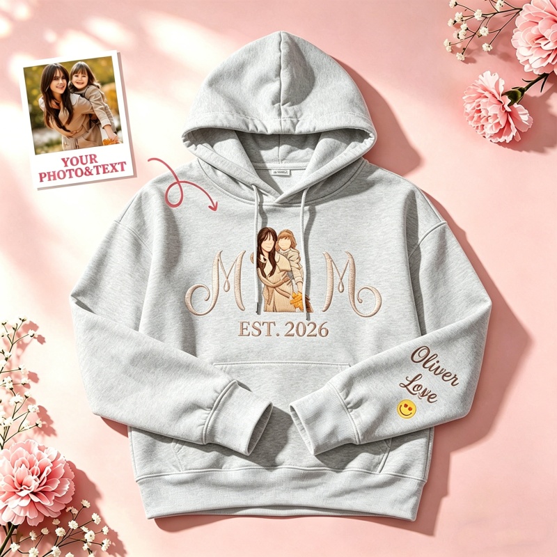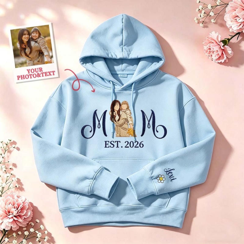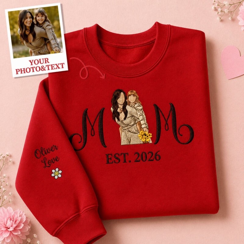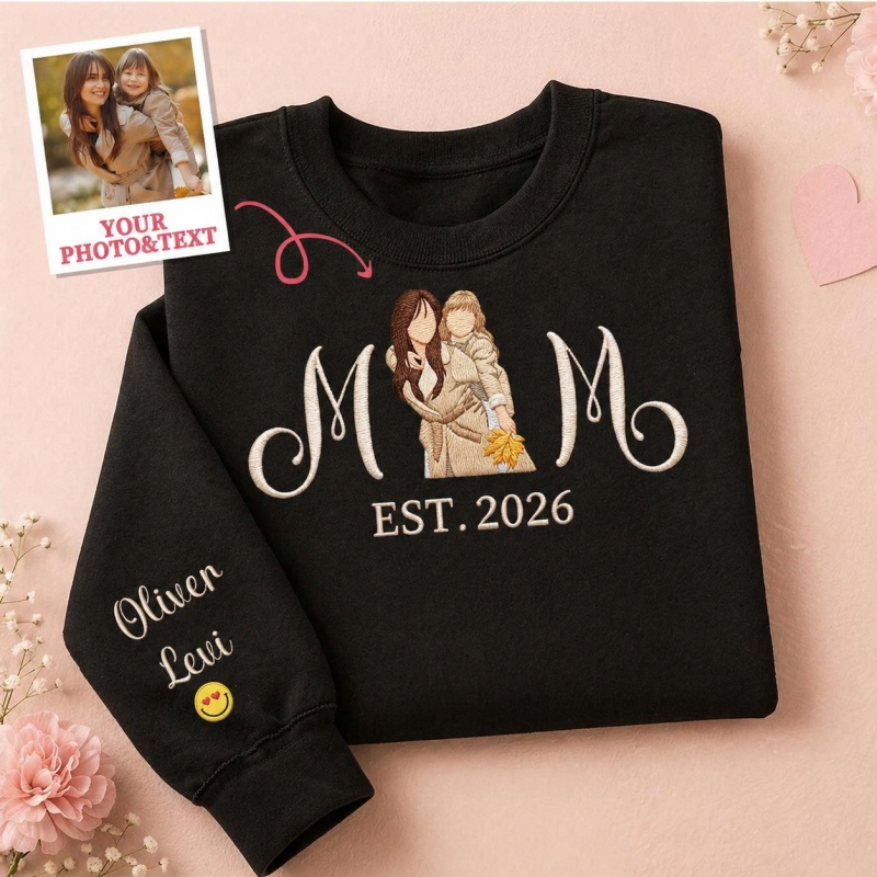 Sweat-shirt Brodé Personnalisé Pour Maman Avec Portrait De Maman Et Enfants