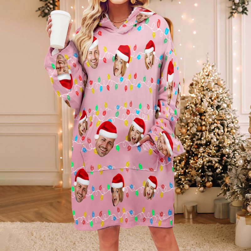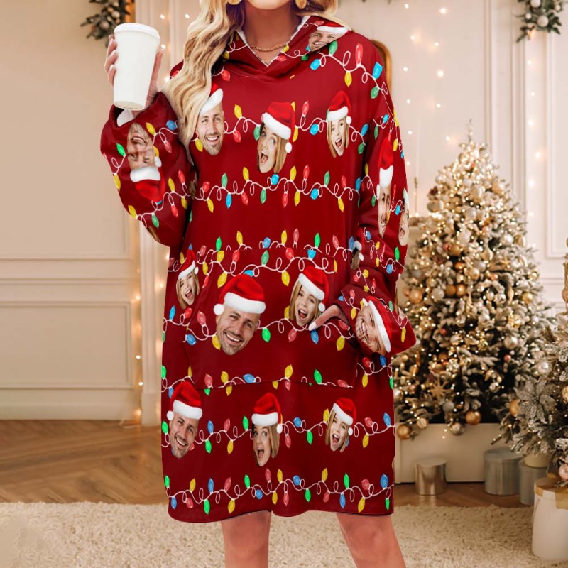 Pyjama De Couverture Unisexe Pour Adultes, Visage Personnalisé, Photo Personnalisée, Famille De Noël, Led, Joyeux Noël