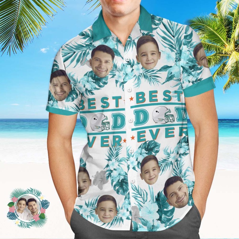Visage Personnalisé Sur Toute La Chemise Hawaïenne D'impression Meilleur Papa Jamais Chemise Hawaïenne Personnalisée Pour Le Père