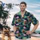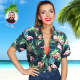 Cette chemise hawaïenne présente un imprimé, une fermeture boutonnée et des manches courtes.