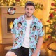 Chemise Hawaïenne Pour Hommes, Visage Personnalisé Imprimé Partout, Motif Flamant De Noël Sans Couture, Chemise Hawaïenne