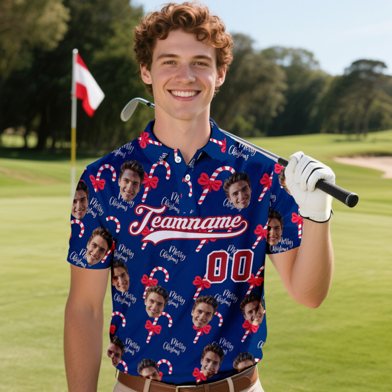 Polo De Golf Personnalisé Avec Visage Et Texte Bleu Père Noël