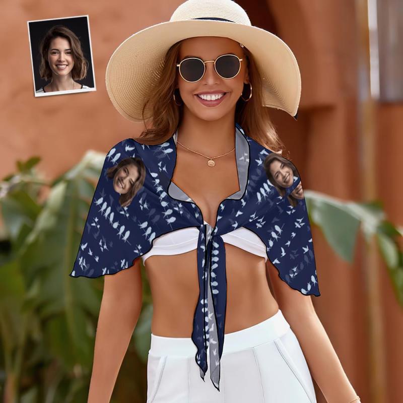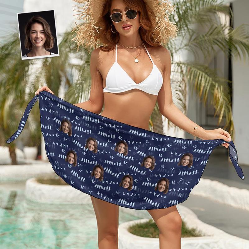 Sarongs Courts Femme Wrap De Plage Visage Personnalisé - Bleu Marine