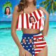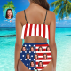 Bikini D'été À Volants Pour Femmes Avec Visage Personnalisé Maillots De Bain Taille Haute Cadeau Pour Elle - Drapeau Américain