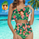Maillots De Bain Taille Haute Bikini À Volants Pour Femmes Bikini Visage Personnalisé Cadeau Pour Elle - Feuilles Et Fleurs
