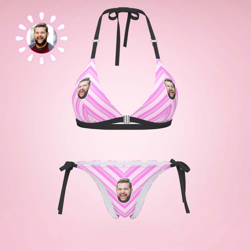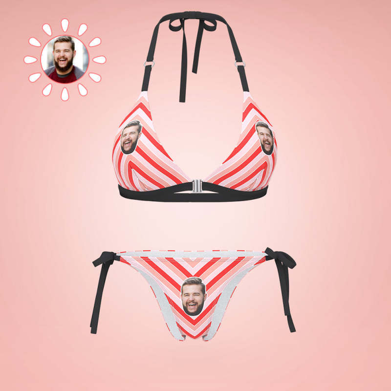 Custom Face Bikini Femmes Sexy Back & Front Close Maillots De Bain Rayures Colorées Cadeau Pour Elle
