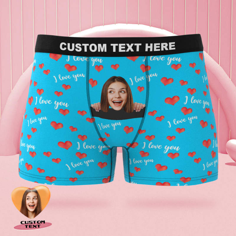 Boxer Visage Personnalisé Je T'aime De Tout Mon Coeur Cadeau De Saint Valentin Coquin Personnalisé Pour Lui