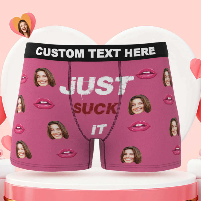 Boxer Visage Personnalisé Just Suck It Cadeau De Saint Valentin Coquin Personnalisé Pour Lui