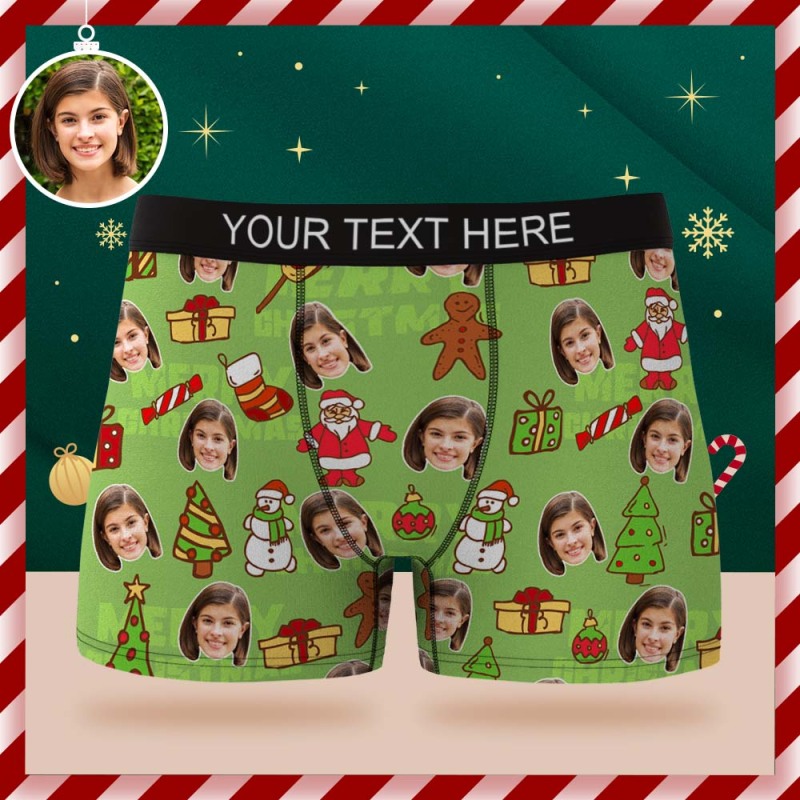 Boxer Visage Personnalisé, Sous-vêtements Verts Personnalisés, Cadeau De Noël Pour Lui
