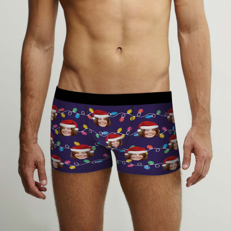 Boxer Personnalisé Avec Visage Personnalisé, Sous-vêtements Led De Noël, Cadeaux De Noël Pour Lui