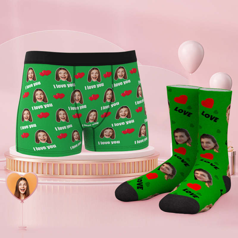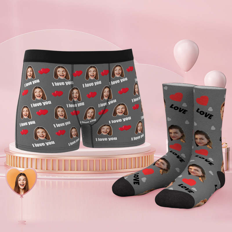 Ensemble Caleçon Et Chaussettes Visage Personnalisé Love