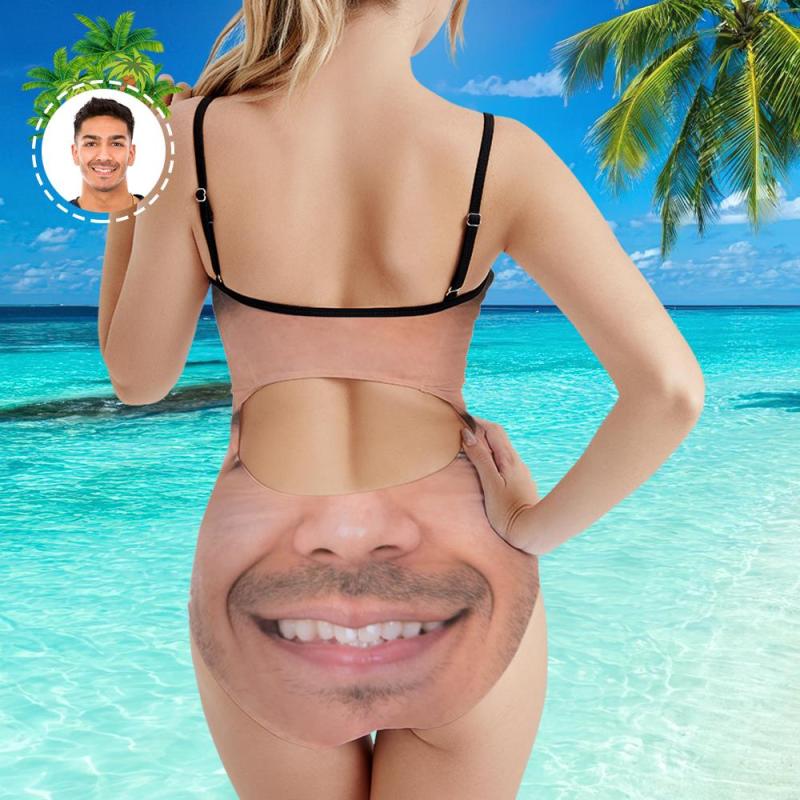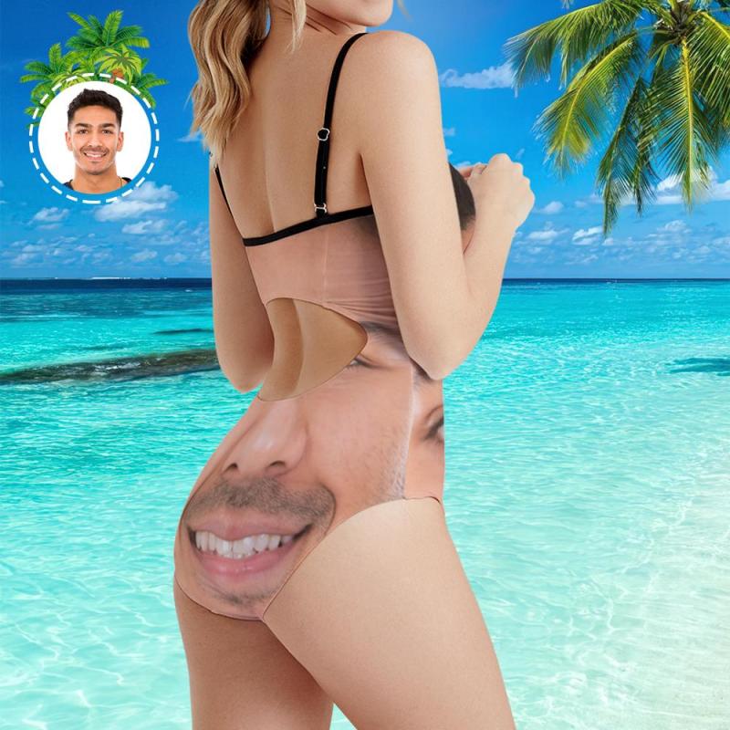 Maillots de bain visage personnalisés aux femmes Photo Caleçon Maillot de bain une pièce Cadeau pour elle - Visage de petit ami