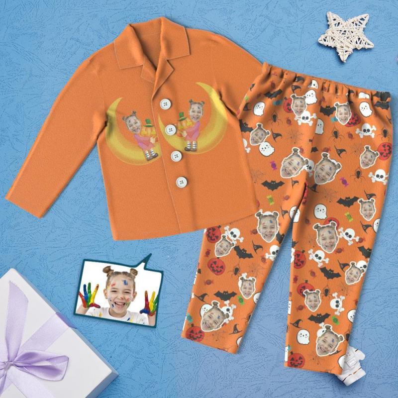 Pyjamas D'éléments D'halloween Pour Enfants De Visage Personnalisé Pour Les Pyjamas Drôles De Lune D'enfants