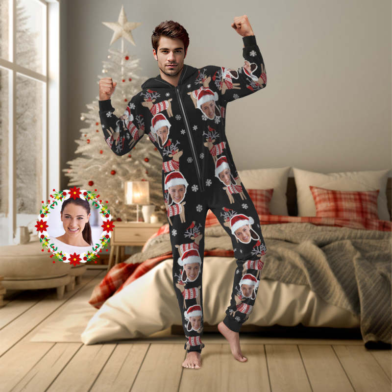 Pyjama De Noël Personnalisé Avec Visage D'élan, Vêtements De Nuit Une Pièce, Cadeau De Noël