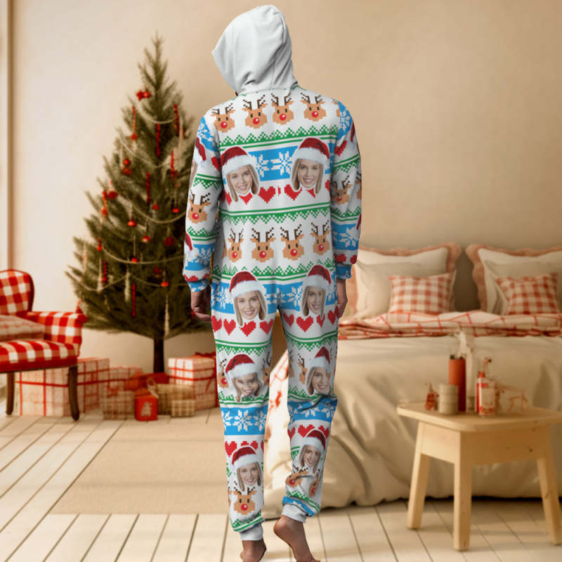 Pyjama Une Pièce Imprimé Visage Personnalisé, Vêtements De Nuit, Cadeau De Noël