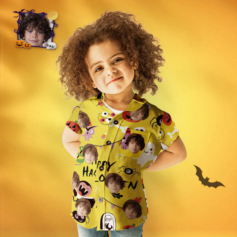 Famille De Visages Personnalisés Aloha Set Happy Halloween T-shirts Hawaïens Assortis Personnalisés